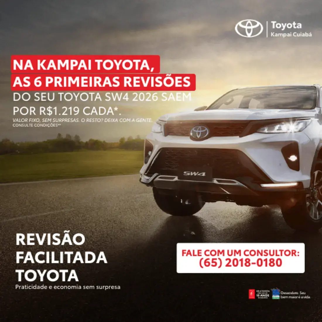 A Kampai Toyota tem o orgulho de apresentar a sua nova concessionária em Cuiabá, um marco que celebra o início de um novo capítulo em inovação e excelência. Com 12 mil m², nosso espaço foi projetado para oferecer o máximo em conforto, tecnologia e um portfólio completo de serviços, garantindo uma experiência única para os clientes da região. Venha conhecer um ambiente pensado para atender todas as suas demandas e superar expectativas. Kampai Toyota Cuiabá: onde inovação e mobilidade se encontram. Esperamos por você!